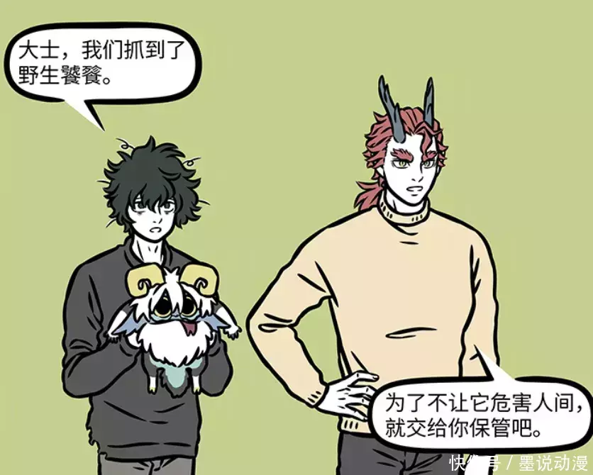 《非人哉》漫画版,饕餮是四大凶兽之一,也是为数不多不怕白泽的凶兽。那么饕餮到底有多猛?它曾经吃掉过白泽的部分身体,就算是哪吒和锦鲤龙也都被它吞进去过。